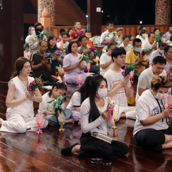 On February 24, 2024, Buddhists will gather to chant, perform evening prayers, listen to a sermon, and participate in a candlelight procession on the occasion of Makha Bucha at Wat Pa Chai Rangsi in Samut Sakhon Province.